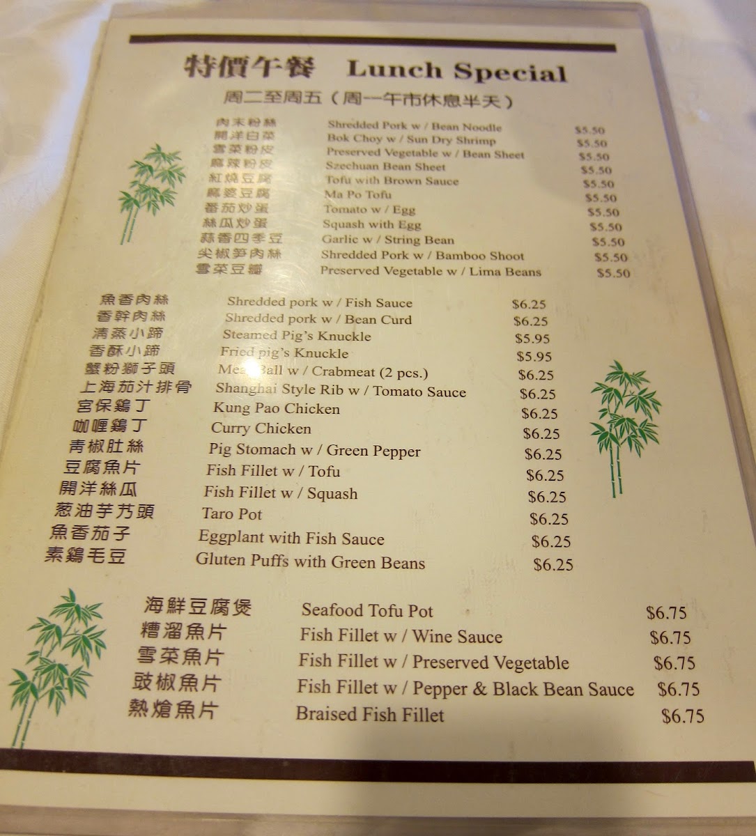 The menu is structured to accommodate both casual dining and quick orders, with lunch specials that provide a selection of set meals. The offerings are suitable for lunch and dinner and include lighter items like steamed dumplings as well as fuller main courses. While detailed categories are not fully specified, the focus is on authentic Shanghai-style Chinese cuisine.